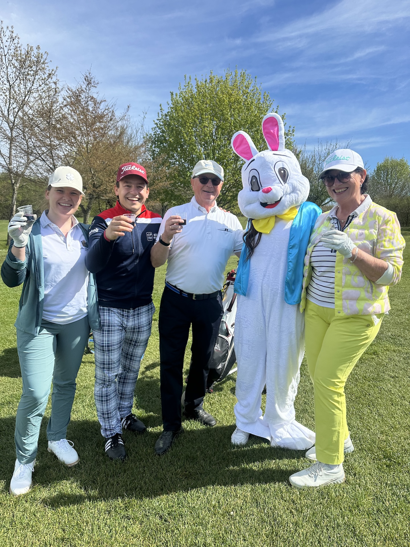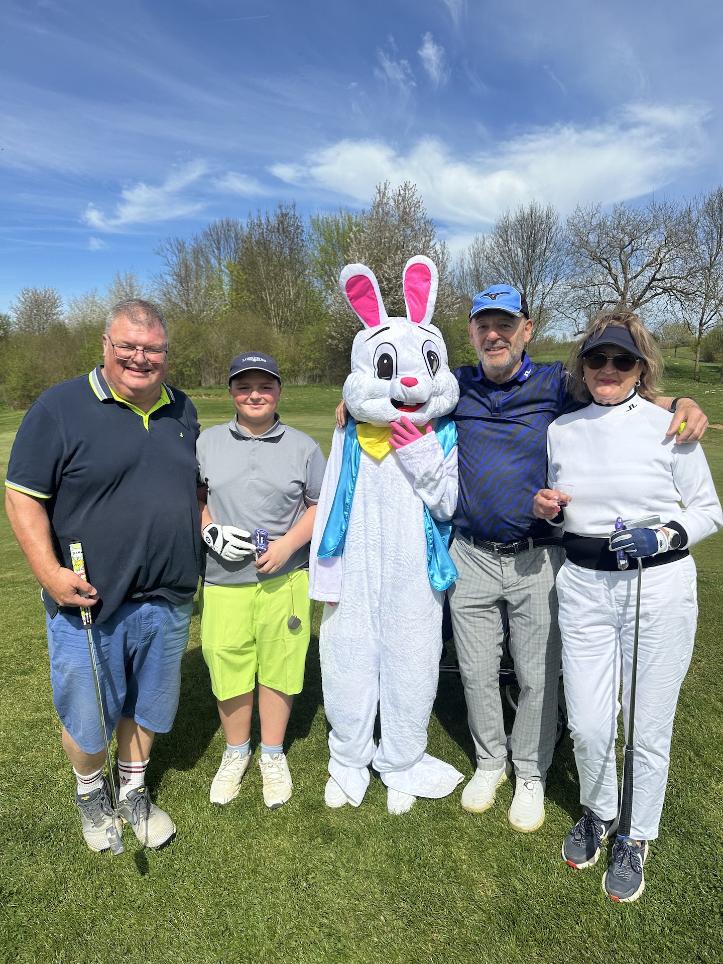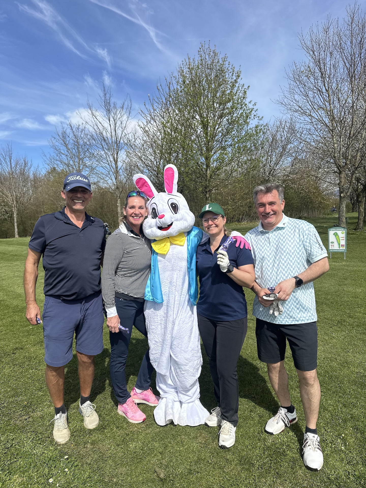 Unser Osterhase „Hasi“ feierte in diesem Jahr sein Debüt. Er fuhr über den Platz und verteilte Schokolade sowie „Birdiewasser“ an die Teilnehmer – eine große Freude für alle Spieler und ein besonderes Highlight des Tages.